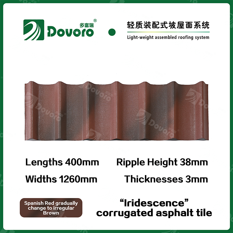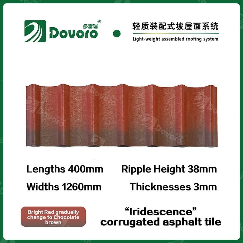 The colorful corrugated asphalt tiles, characterized by simple structure and convenient and fast installation, can be quickly installed on various base layers to shorten construction period.