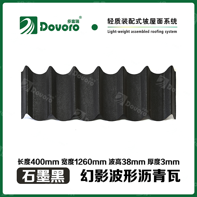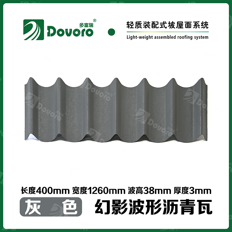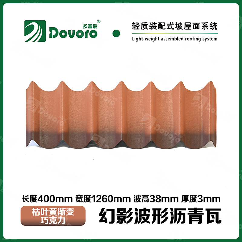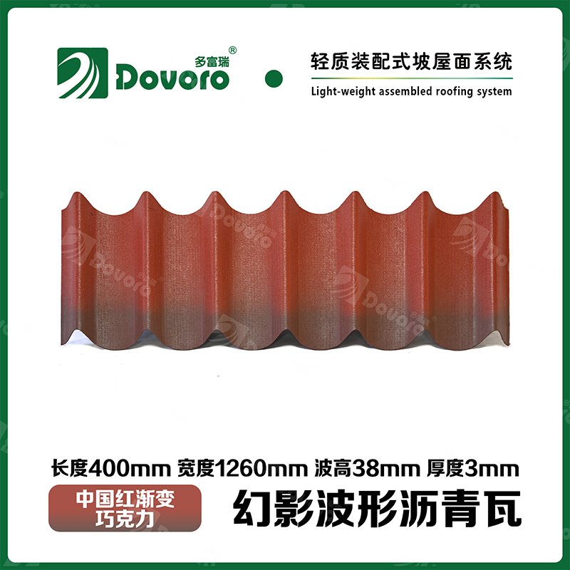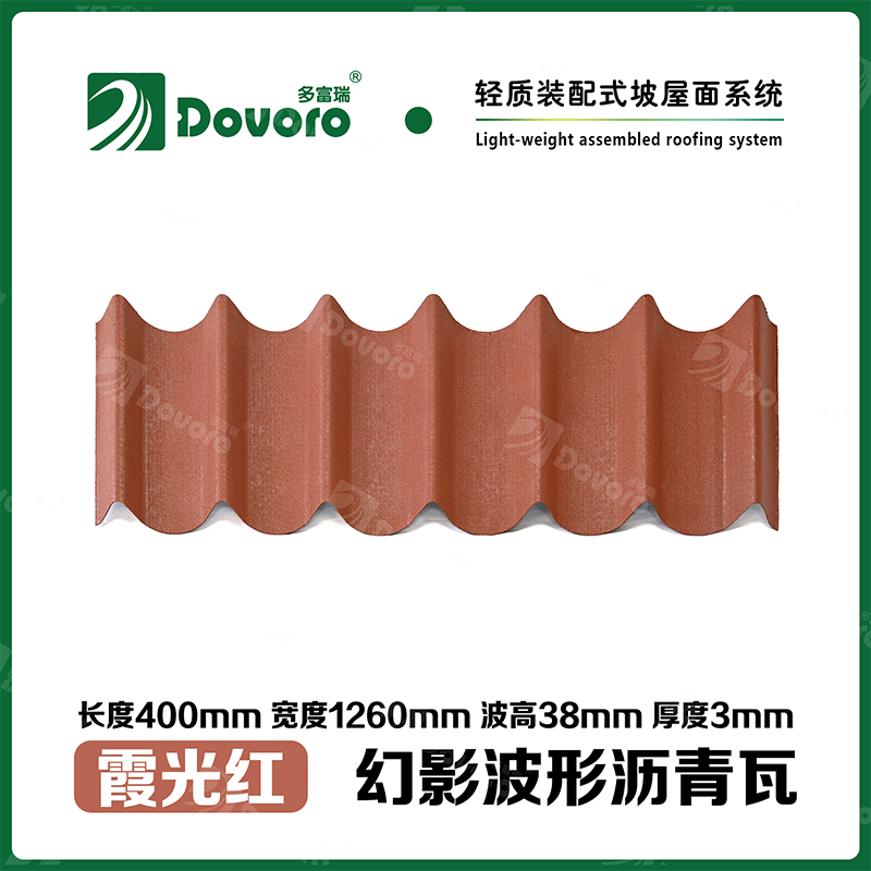多富瑞幻影波形瀝青瓦是由礦植物纖維板經(jīng)過整形后浸漬瀝青而成,一次成型的基層板在高溫下浸漬瀝青,使瓦材整體性更加牢固;熱固性樹脂保證了瓦材的強(qiáng)度和剛度;進(jìn)口原料配合先進(jìn)的著色工藝確保顏色持久、混色噴涂工藝使瓦材外觀高雅、色彩美觀、立體質(zhì)感。