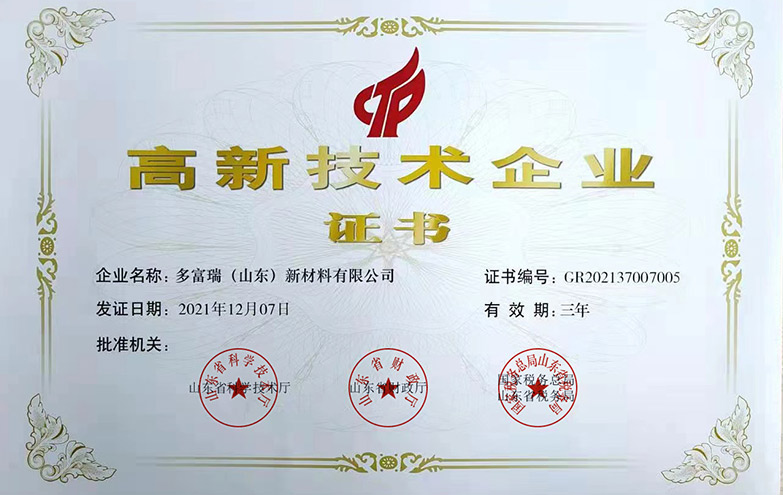 公司加大科技投入和引進(jìn)專業(yè)技術(shù)人才,建立了國內(nèi)第一個(gè)專業(yè)實(shí)驗(yàn)室、技術(shù)研發(fā)中心,并積極引進(jìn)先進(jìn)設(shè)備、改進(jìn)工藝、開發(fā)系列新產(chǎn)品,2021年11月正式認(rèn)定成為高新技術(shù)企業(yè)。