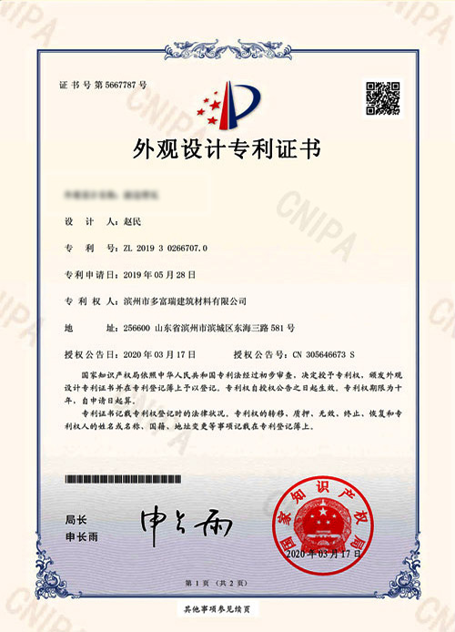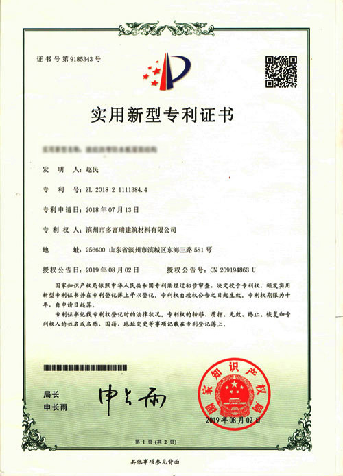 公司以研發(fā)和創(chuàng)新為核心,擁有3項(xiàng)發(fā)明專利,11項(xiàng)實(shí)用新型專利,5項(xiàng)外觀專利,首創(chuàng)中國波形瀝青屋面材料,達(dá)到歐盟同類產(chǎn)品質(zhì)量標(biāo)準(zhǔn)。新生產(chǎn)基地占地30000余平方米,年產(chǎn)量為400萬平方米/年。