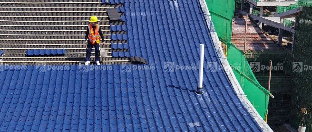 本項(xiàng)目為長沙幼師高等??茖W(xué)院,使用“幻彩”波形瀝青瓦和波形瀝青防水板組合施工,總施工面積約40000平米。