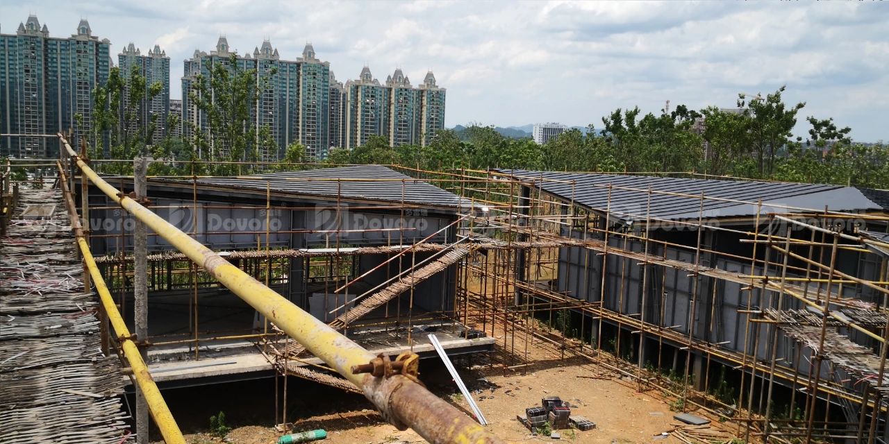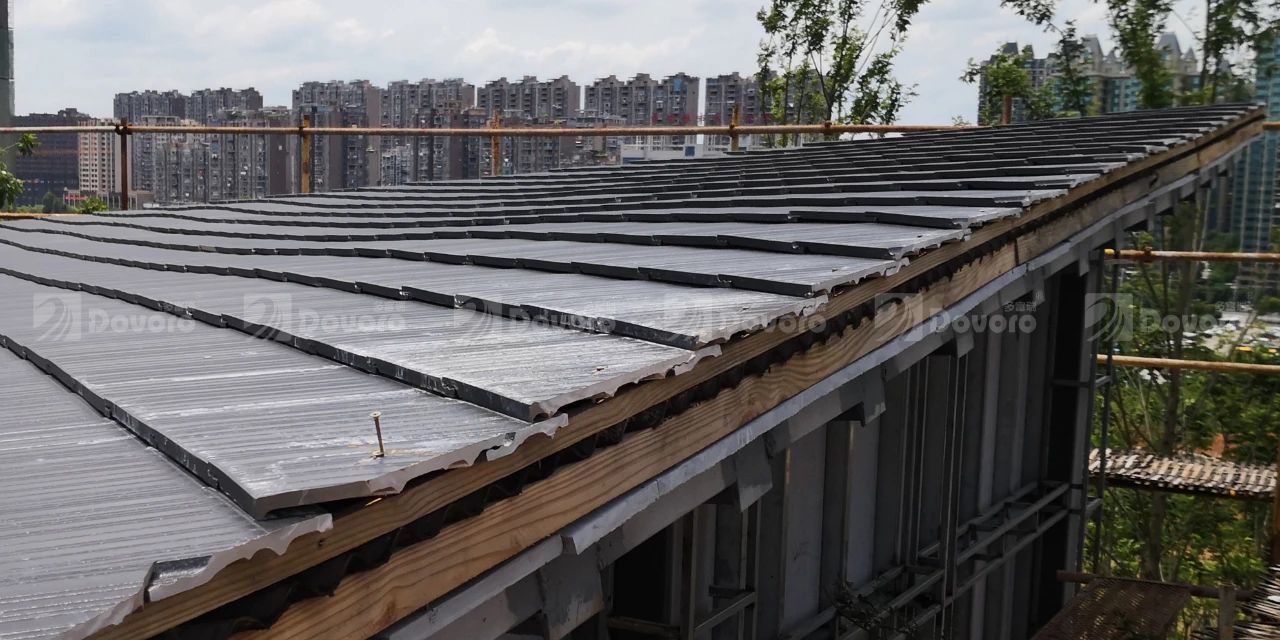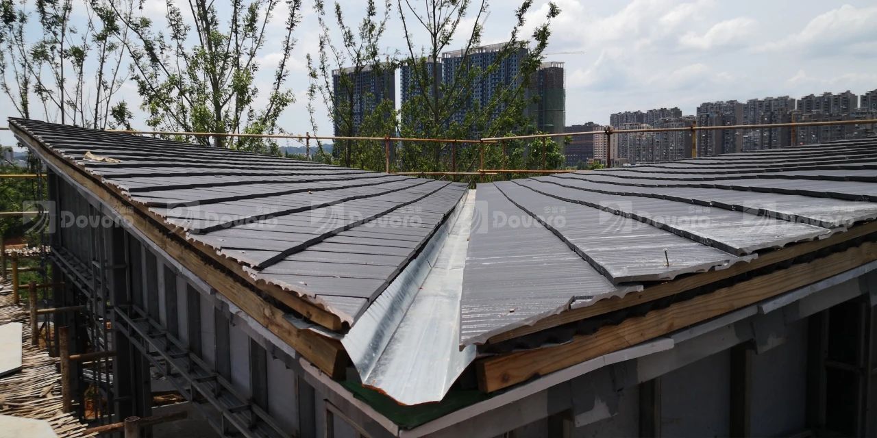本項(xiàng)目中建筑采用鋼結(jié)構(gòu)裝配式設(shè)計(jì),波形瀝青防水板可以在各類屋面基層上快速安裝。