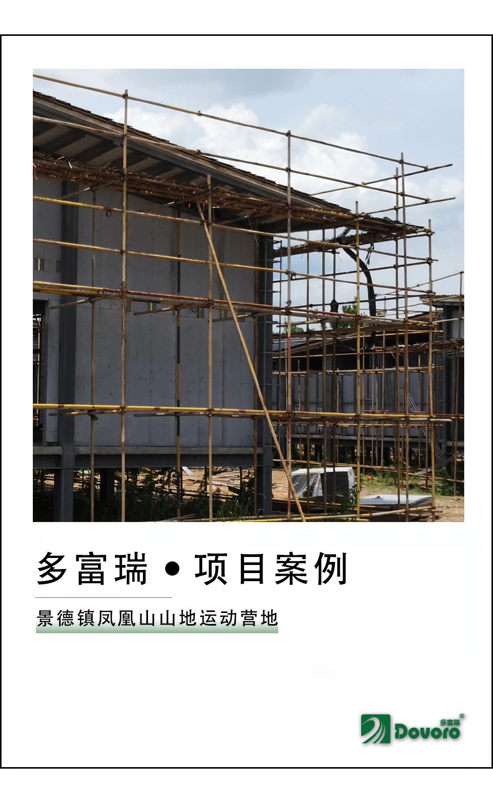 鳳凰山山地運(yùn)動(dòng)營地位于江西省景德鎮(zhèn)珠山區(qū),是一個(gè)集休閑運(yùn)動(dòng)、野外露營、生態(tài)旅游為一體的城市公園。本項(xiàng)目使用波形瀝青防水板作為瓦材下覆層施工,總施工面積約3500平米。