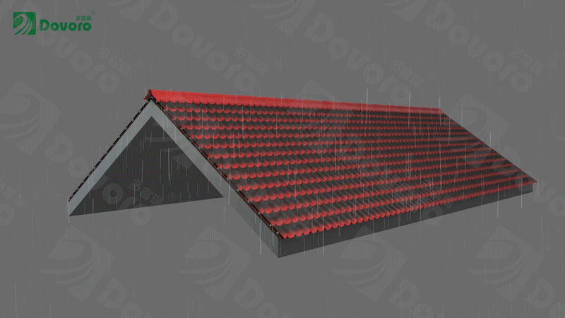 即使遇到連續(xù)的陰雨天氣,瓦材中的水分來不及蒸發(fā),輕質(zhì)坡屋面系統(tǒng)的波形瀝青瓦下方,仍有200cm³的空間,可以經(jīng)過通風(fēng)帶走屋面系統(tǒng)中的潮氣。
