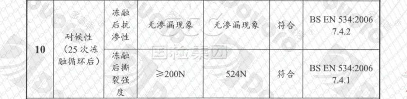 按照T/CWA201-2020《波形瀝青瓦》的標(biāo)準(zhǔn),波形瀝青瓦的吸水率需要≤20%。以“幻影瓦”為例,吸水率僅為6%,遠(yuǎn)低于要求標(biāo)準(zhǔn)。同時(shí)在25次循環(huán)凍融測(cè)試后,性能依舊穩(wěn)定。